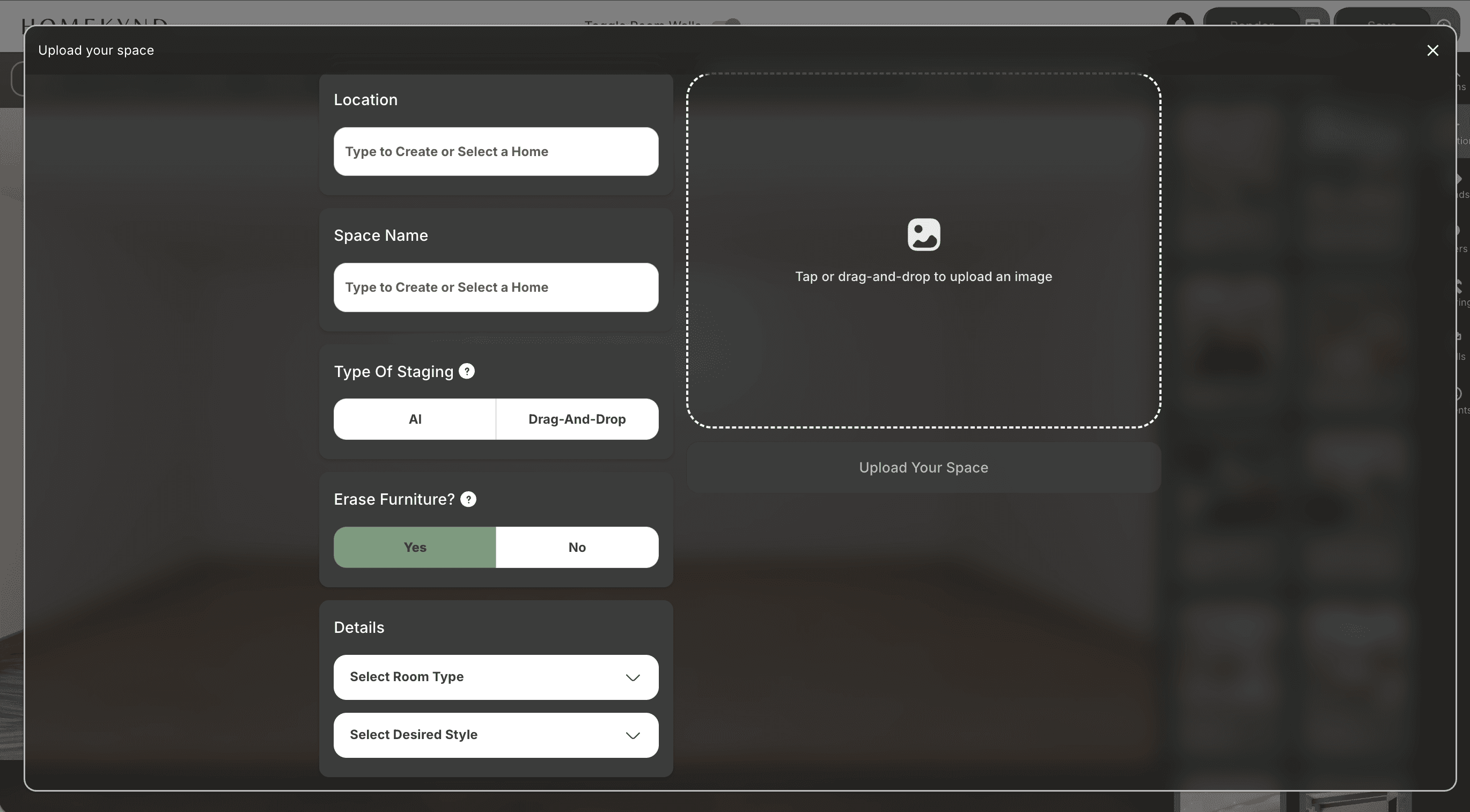 If your deck or patio is covered in existing furniture or general clutter, you may want a clean visual slate to get started. This is a simple fix: select "erase furniture" on the upload form!