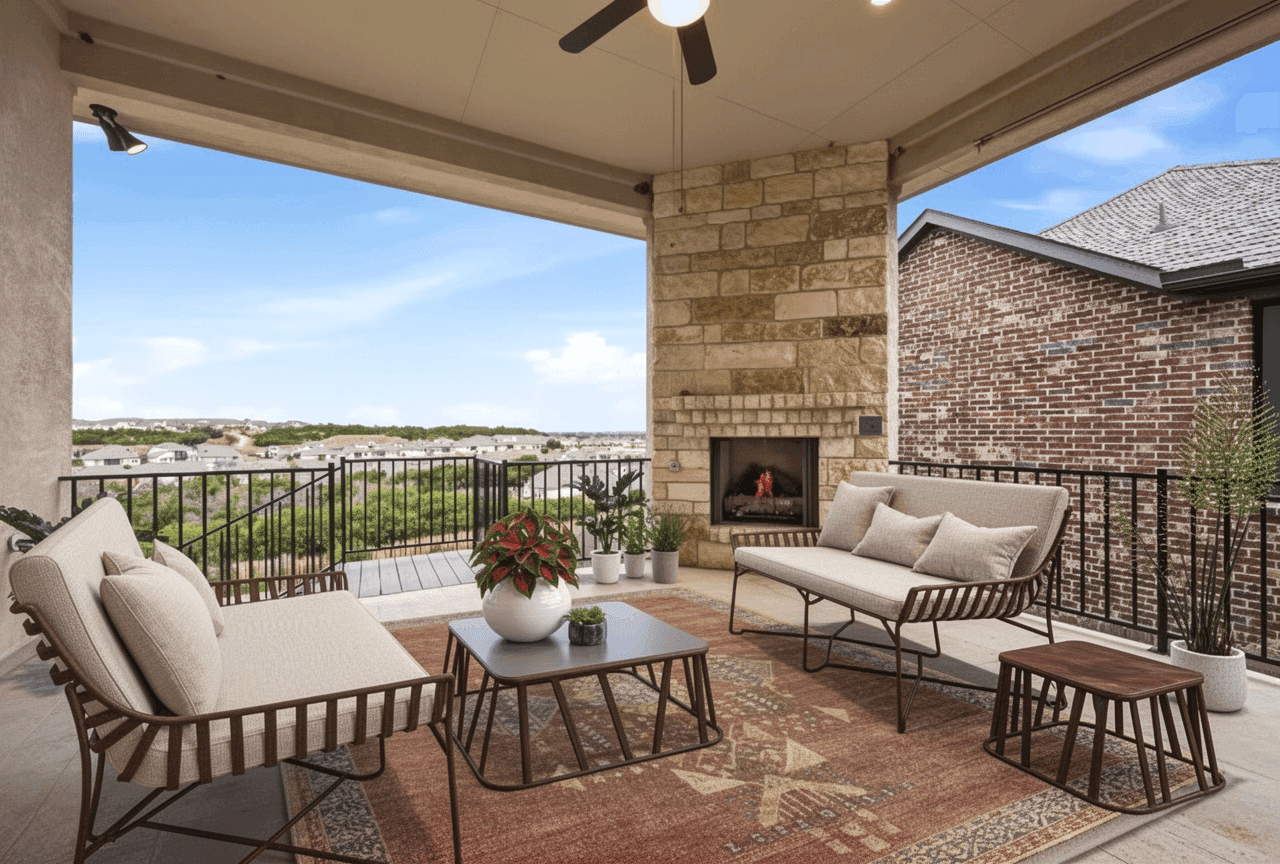 Homekynd doesn’t ask you to design the whole deck at once. The method is simple: make One decision that changes the space. For this deck, we noted that it includes a fireplace which helps us understand that it is more of a cozy combo space for hanging out. This furniture collection and flow is conversational and the iron mimics the setting.
